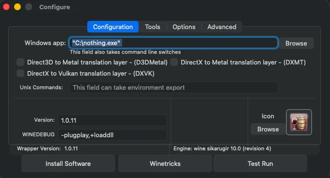 brew install --cask Sikarugir-App/sikarugir/sikarugir