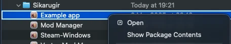 I havenโ€™t found a clean solution to install mod managers such as Mod Organizer 2, but you can download all mod files and copy paste them in the Skyrim folder. You can navigate to the C-drive by opening the Package Contents, the same way you can find the Configure window. Next to the Configure, thereโ€™s a folder named drive_c, which is the Windows file system. Navigate to the Skyrim folder (Program Files (x86)/Steam/steamapps/common/Skyrim Special Edition/) and paste all the mod files in the Data folder.